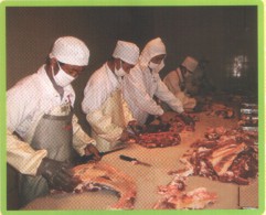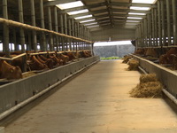 公司直屬優(yōu)質肉牛育肥場,位于平度市田莊鎮宮東村南1公里處,始建于2009年3月,設計存欄3000頭,現存欄1000余頭,占地100多畝,現有建筑面,18600平方米。公司擁有一批具有養牛經驗的管理、技術、飼養人員。聘請了全國養牛方面的知名專家作為技術顧問。養牛場現有職工23人,具有初、中級以上技術等級和從事養牛5年以上的工人占70%以上,有管理和技術人員5人,其中畜牧獸醫專業中、高級以上職稱3人。本公司通過食品安全認證、質量體系、無公害認證,是國家地理標志保護產品。是肉牛定點屠宰單位。被評為“島城市民最喜愛的農產品品牌”、第一批“平度好食材”。本公司肉牛養殖場喂牛所用飼料全部采用自己配制的飼料,主要使用大豆、玉米、麩皮,大豆經炒料機炒熟后再分碎飼喂,無任何添加劑。公司有火鍋料理店6處,安排從業人員80多人。公司擁有年屠宰加工1萬頭肉牛的屠宰生產線,嚴格執(zhí)行國家GB/T17238-2008鮮凍牛肉分割標準,并按伊斯蘭清真屠宰要求進行屠宰分割以及排酸嫩化處理。我公司生產的牛柳、西冷、肉眼、上腦、S腹肉等產品主要銷往上海,北京,南京,濟南,青島,煙臺等大中城市的四、五星級酒店,用作西餐、韓餐、日餐、中餐等深受用戶青睞。